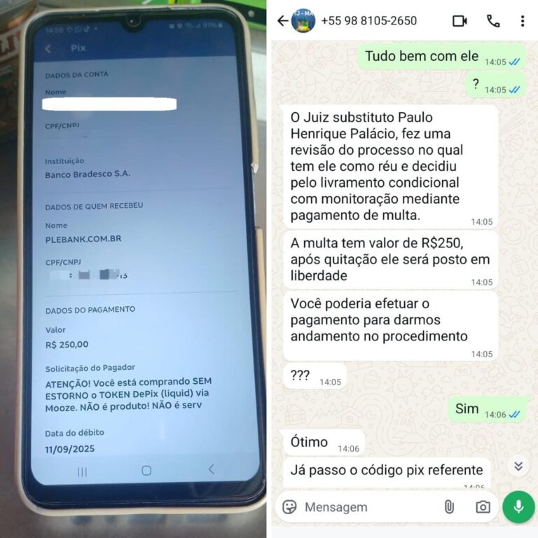 De acordo com denúncias recebidas em Chapadinha, criminosos têm se passado por juízes e profissionais do Judiciário, utilizando o brasão do Estado e o nome do Tribunal de Justiça em mensagens enviadas por aplicativos. O objetivo é obter transferências de dinheiro das vítimas.