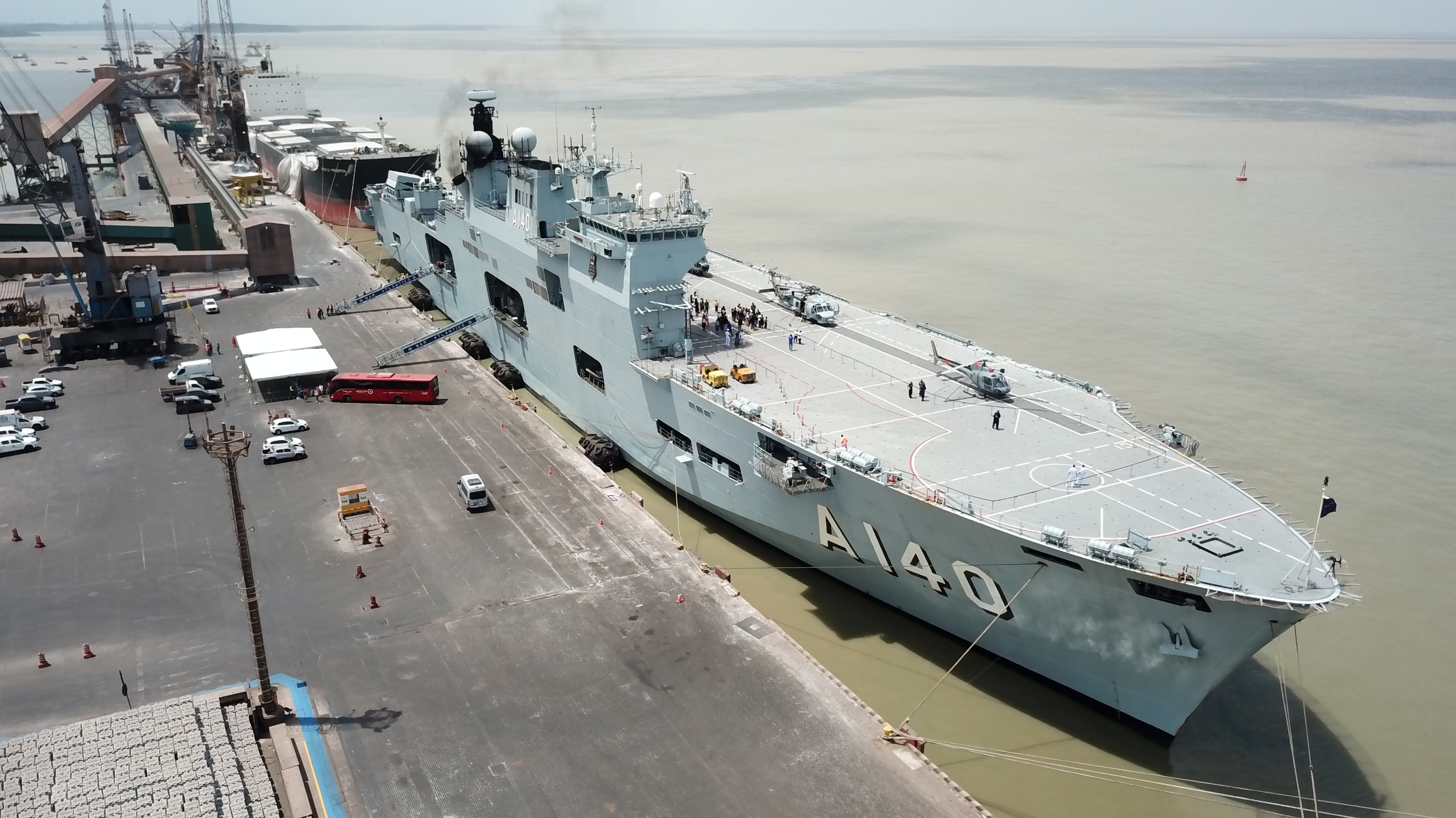 Com 203 metros de comprimento e 30 metros de altura, o navio tem capacidade para operar 18 aeronaves simultaneamente, entre hangar e convés de voo, reforçando sua versatilidade e importância estratégica. Projetado para o controle de áreas marítimas, a embarcação também está preparada para atuar em missões humanitárias, oferecendo suporte em situações de desastres naturais, evacuação de civis e operações de manutenção da paz.